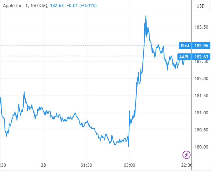 (蘋果公司分鐘線圖,來源:TradingView)