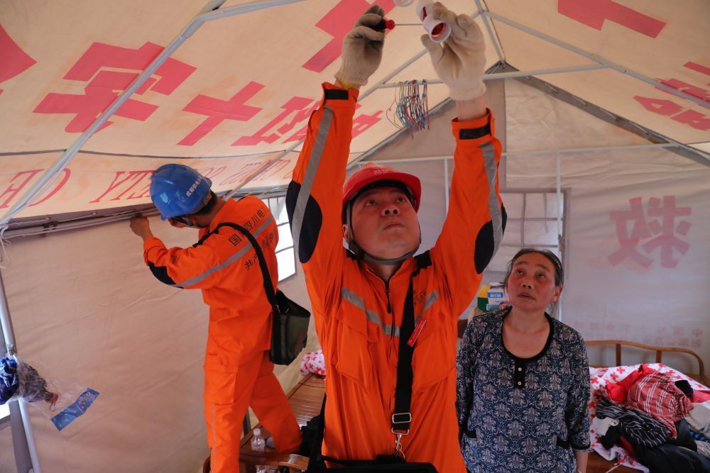 2019年6月19日,高新連心橋黨員服務隊馳援宜賓抗震救災,為受災群眾安置點帳篷接電。新華社發(fā)(謝勇 攝)