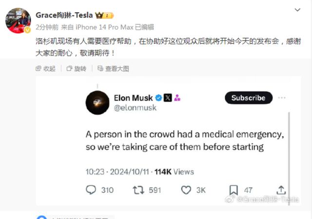 北京時(shí)間10月11日消息,原定于北京時(shí)間10點(diǎn)舉行的特斯拉Robotaxi發(fā)布會(huì)已經(jīng)推遲了半個(gè)小時(shí),至今還未開(kāi)始。正當(dāng)大家紛紛猜測(cè)緣由時(shí),馬斯克在社交媒體上公布了原因,稱(chēng)現(xiàn)場(chǎng)有人突發(fā)疾病暈倒需要照顧,因此發(fā)布會(huì)推遲舉行,但他未確定具體開(kāi)始的時(shí)間。