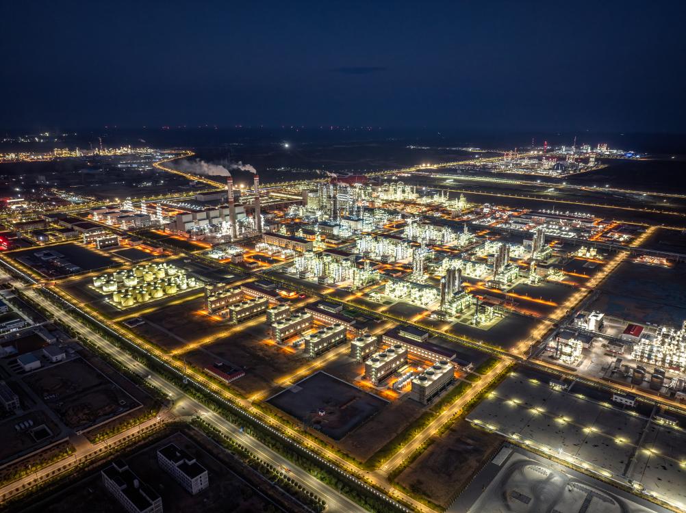 航拍榆林化學(xué)廠區(qū)夜景。(受訪者供圖)