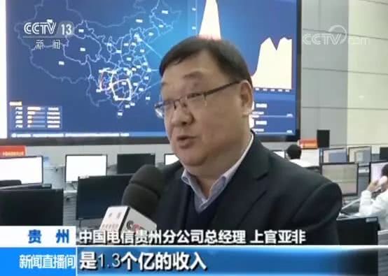 “中國(guó)電信貴州分公司總經(jīng)理 上官亞非:我們?cè)?016年的時(shí)候是1500萬(wàn)的收入,在2017年的時(shí)候是5300萬(wàn)的收入,2018年本來(lái)定的計(jì)劃是八千萬(wàn)的收入,結(jié)果現(xiàn)在我們統(tǒng)計(jì)出來(lái)是1.3個(gè)億的收入。增長(zhǎng)超過(guò)百分之百?!?/p>