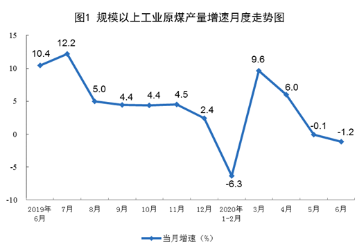 原煤生產(chǎn)小幅下降。6月份,生產(chǎn)原煤3.3億噸,同比下降1.2%,降幅比上月擴大1.1個百分點;日均產(chǎn)量1114萬噸,環(huán)比增加86萬噸。上半年,生產(chǎn)原煤18.1億噸,同比增長0.6%,一季度為下降0.5%。