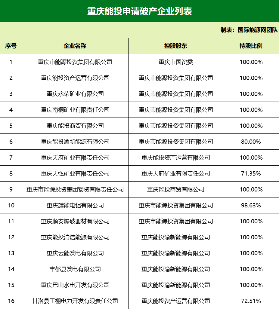 經(jīng)查詢,除重慶能投外,其他15家公司均為重慶能投控股子公司,涉及資產(chǎn)百億,員工數(shù)萬人。