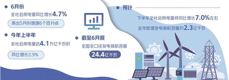 “隨著疫情逐步緩解,穩(wěn)經(jīng)濟(jì)政策效果加快顯現(xiàn),疊加多地高溫天氣因素,6月份全社會(huì)用電量同比增長(zhǎng)4.7%,高出5月份增速6個(gè)百分點(diǎn)。”在近日召開的全國(guó)電力供需形勢(shì)半年報(bào)發(fā)布會(huì)上,中國(guó)電力企業(yè)聯(lián)合會(huì)秘書長(zhǎng)郝英杰表示,6月份電力消費(fèi)增速明顯回升,一定程度上反映出當(dāng)前復(fù)工復(fù)產(chǎn)、復(fù)商復(fù)市取得積極成效。