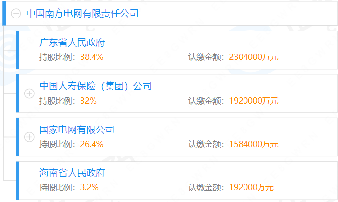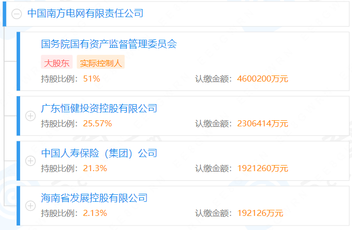 據(jù)媒體2021年12月報道,完善南方電網(wǎng)股權(quán)結(jié)構(gòu)推動高質(zhì)量發(fā)展專題會議在深圳召開,南方電網(wǎng)股權(quán)結(jié)構(gòu)調(diào)整為國務院國資委持股51%、廣東省人民政府持股25.57%、中國人壽保險(集團)公司持股21.3%、海南省人民政府持股2.13%。