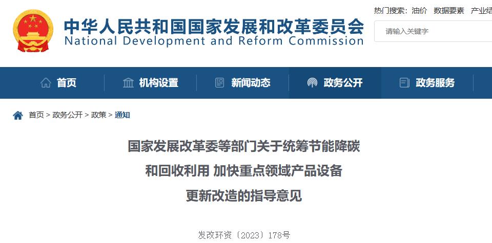 國(guó)家發(fā)展改革委等部門關(guān)于統(tǒng)籌節(jié)能降碳和回收利用 加快重點(diǎn)領(lǐng)域產(chǎn)品設(shè)備更新改造的指導(dǎo)意見