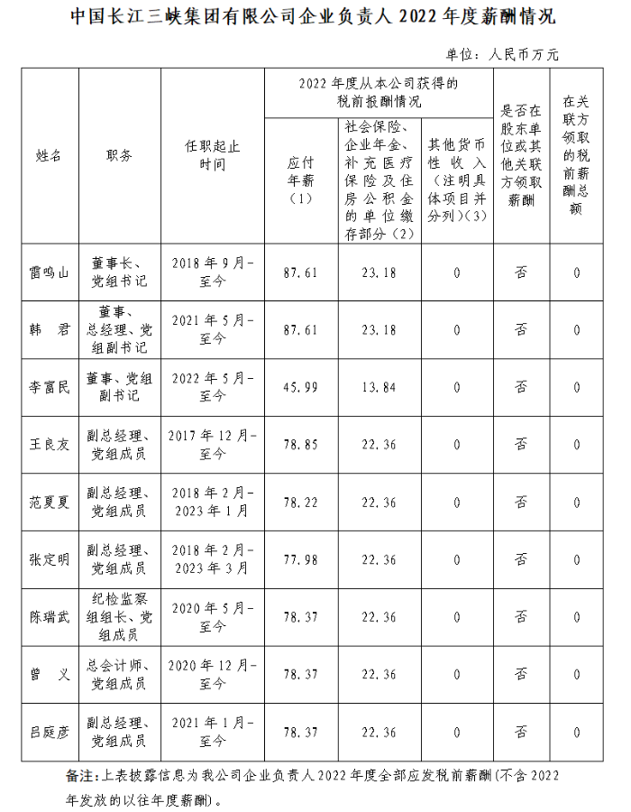 備注:上表披露信息為我公司企業(yè)負責(zé)人2022年度全部應(yīng)發(fā)稅前薪酬(不含2022年發(fā)放的以往年度薪酬)。