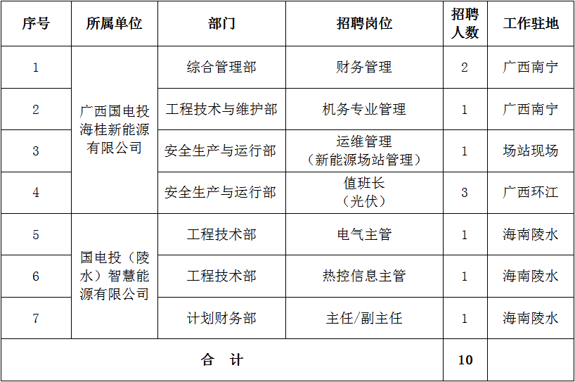 詳見《國家電力投資集團有限公司海南分公司及所屬單位招聘崗位職責及任職條件》(附件1)。