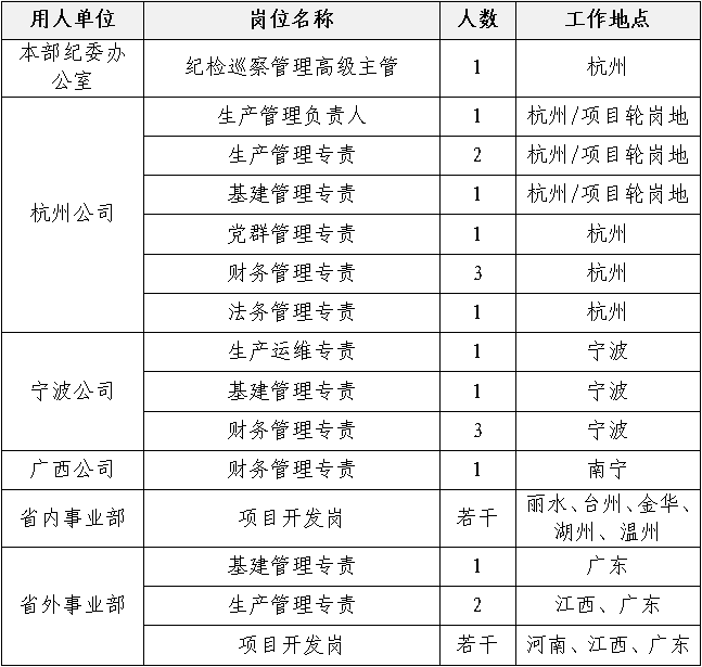 根據(jù)公司發(fā)展需要,浙江分公司本部及其所屬單位,杭州公司、寧波公司、廣西公司、各事業(yè)部現(xiàn)面向社會(huì)公開(kāi)招聘相關(guān)人員,具體事項(xiàng)公告如下: