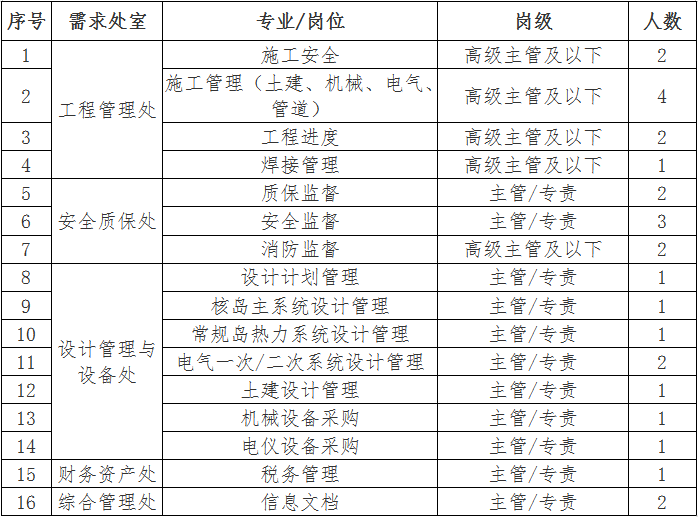 (2)副科級(jí)崗位:報(bào)名人員為副科級(jí)的,對(duì)任職年限不作要求;報(bào)名人員為一般員工的,需在主管/專工級(jí)崗位工作滿3年及以上。