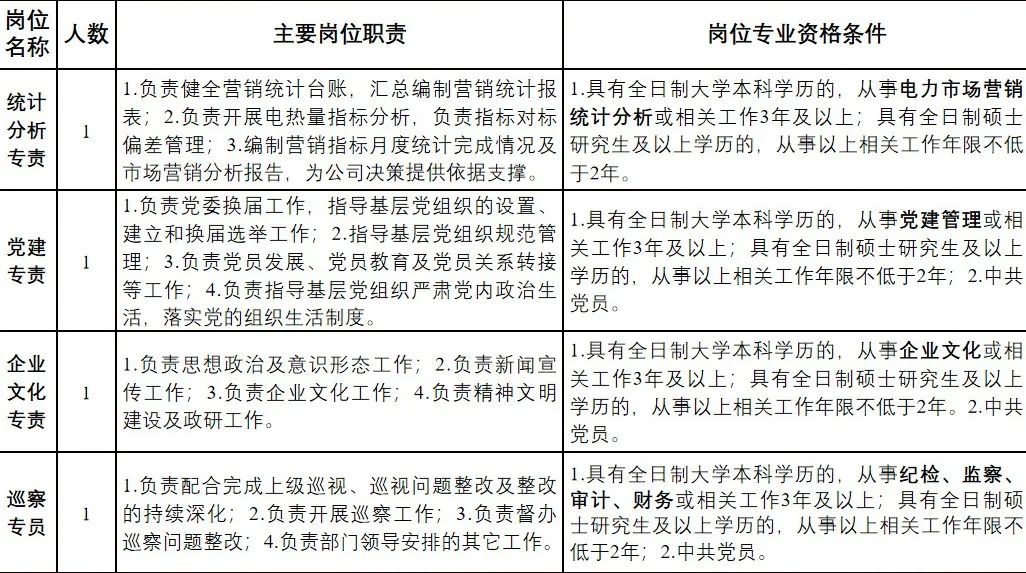 3. 從事與擬聘崗位相同或相近專業(yè)工作年限不低于3年;具有全日制碩士研究生及以上學歷的,專業(yè)工作年限不低于2年。