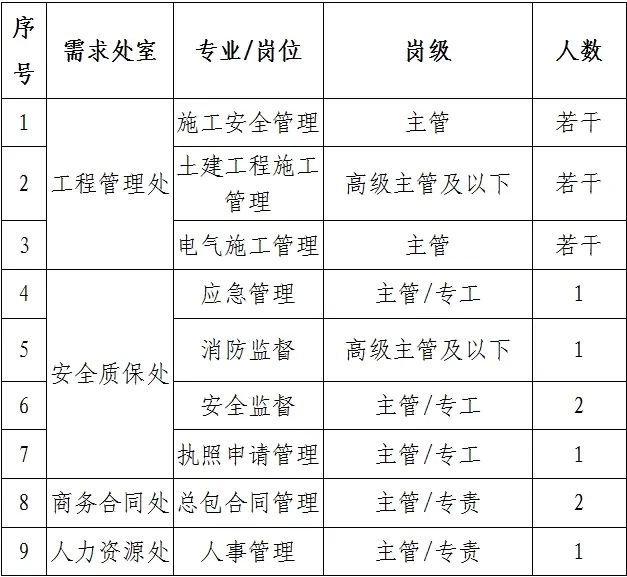 (2)副科級崗位:報(bào)名人員為副科級的,對任職年限不作要求;報(bào)名人員為一般員工的,需在主管/專工級崗位工作滿3年及以上。
