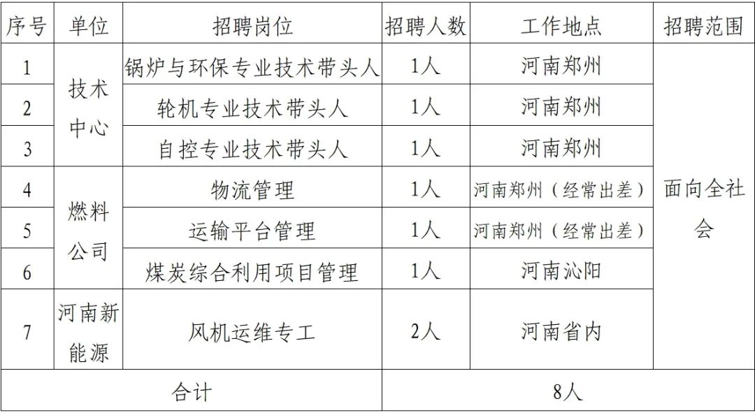 國(guó)家電投集團(tuán)河南電力有限公司(簡(jiǎn)稱“河南公司”)是國(guó)家電投最早設(shè)立的省域分公司、華中區(qū)域最大的成員單位、河南省域發(fā)展統(tǒng)籌牽頭單位、建設(shè)世界一流清潔能源企業(yè)的主力軍、排頭兵和試驗(yàn)田,是中原地區(qū)第一大電力熱力供應(yīng)商和清潔裝機(jī)最大、供熱規(guī)模最大、能耗指標(biāo)最優(yōu)、電站服務(wù)實(shí)力最強(qiáng)、節(jié)能環(huán)保最領(lǐng)先的綜合智慧能源企業(yè)。根據(jù)河南公司發(fā)展需要,河南公司所屬單位現(xiàn)面向全社會(huì)公開(kāi)招聘相關(guān)人才,具體事項(xiàng)公告如下: