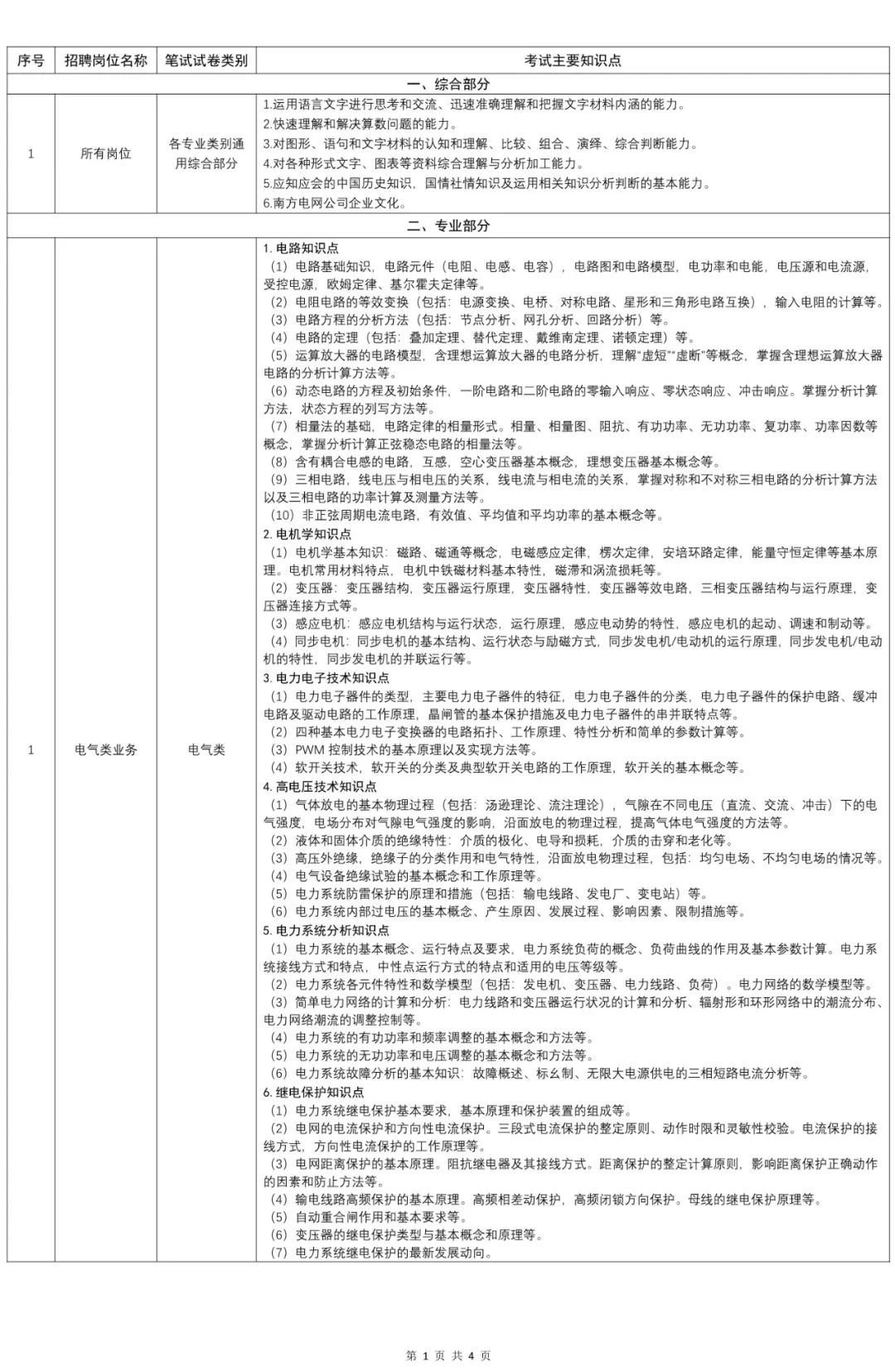 南方電網(wǎng)公司 2024 年校園招聘筆試大綱
