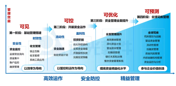 司庫管理注重強(qiáng)化營運(yùn)資金、流動(dòng)性、資本結(jié)構(gòu)、利率匯率風(fēng)險(xiǎn)和融資的管控,通過司庫體系建設(shè),企業(yè)可將資金被動(dòng)管理轉(zhuǎn)變?yōu)橹鲃?dòng)管理、超前管理,實(shí)現(xiàn)集團(tuán)各類金融資源可視、可控和增值,成為集團(tuán)戰(zhàn)略落地的堅(jiān)實(shí)保障。