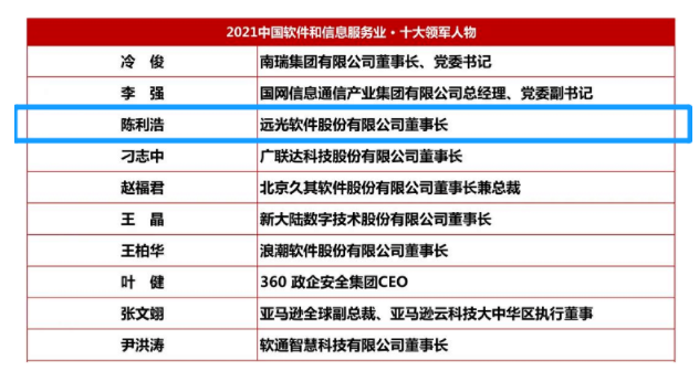 12月15日,以“軟件賦能 激蕩數(shù)字未來”為主題的2021(第十一屆)中國軟件大會在線上召開。遠(yuǎn)光軟件公司董事長陳利浩憑借其在推動中國企業(yè)數(shù)字化轉(zhuǎn)型方面的卓越成就和對信息產(chǎn)業(yè)作出的杰出貢獻(xiàn),獲評“2021中國軟件和信息服務(wù)業(yè)十大領(lǐng)軍人物”。