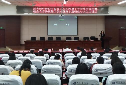 深化校企合作,引進(jìn)優(yōu)質(zhì)人才。5月29日,遠(yuǎn)光軟件與長沙理工大學(xué)獎(jiǎng)學(xué)金捐贈(zèng)、校企合作協(xié)議簽字儀式暨第十期職業(yè)與人生大講壇成功舉辦。雙方簽署了校企合作協(xié)議及捐贈(zèng)協(xié)議,遠(yuǎn)光軟件向長沙理工大學(xué)教育基金會(huì)捐贈(zèng)設(shè)立“遠(yuǎn)光軟件獎(jiǎng)學(xué)金”,建立全方位校企合作,共同培育高素質(zhì)應(yīng)用型人才,為實(shí)現(xiàn)企業(yè)技術(shù)創(chuàng)新與優(yōu)質(zhì)人才引進(jìn)做出新的貢獻(xiàn)。