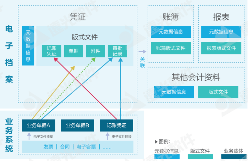 新《會計檔案管理辦法》提出:反映單位職能活動、具有查考和保存價值的電子文件及其元數(shù)據(jù)均應收集、歸檔。遠光智慧檔案涵蓋了全域會計資料,實現(xiàn)檔案“應采盡采,全面電子化” ,在歸檔過程中同步建立了檔案數(shù)據(jù)間的有機聯(lián)系,通過對多源異構數(shù)據(jù)的自動匯聚歸檔,使得歸檔后保持檔案的全貌與原貌。