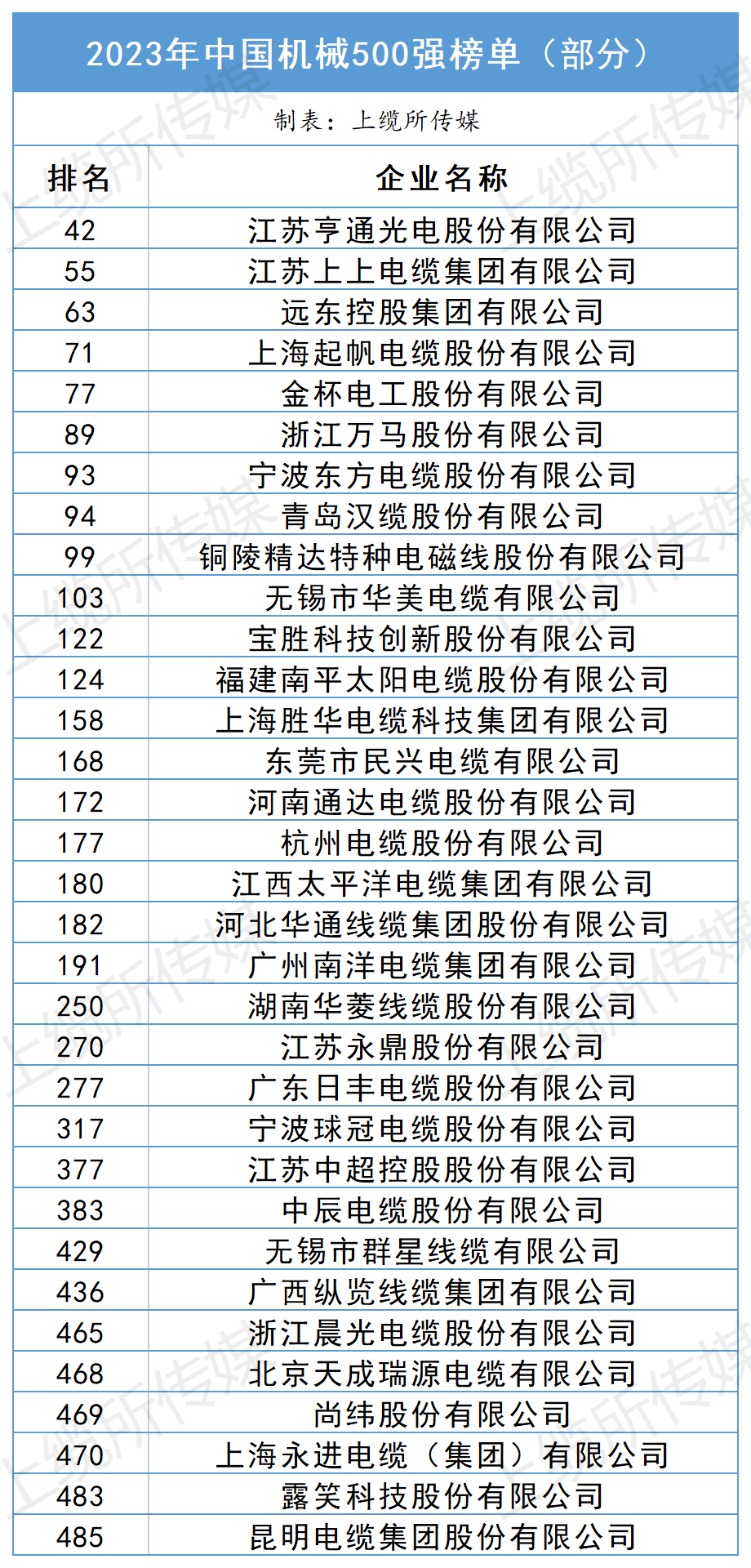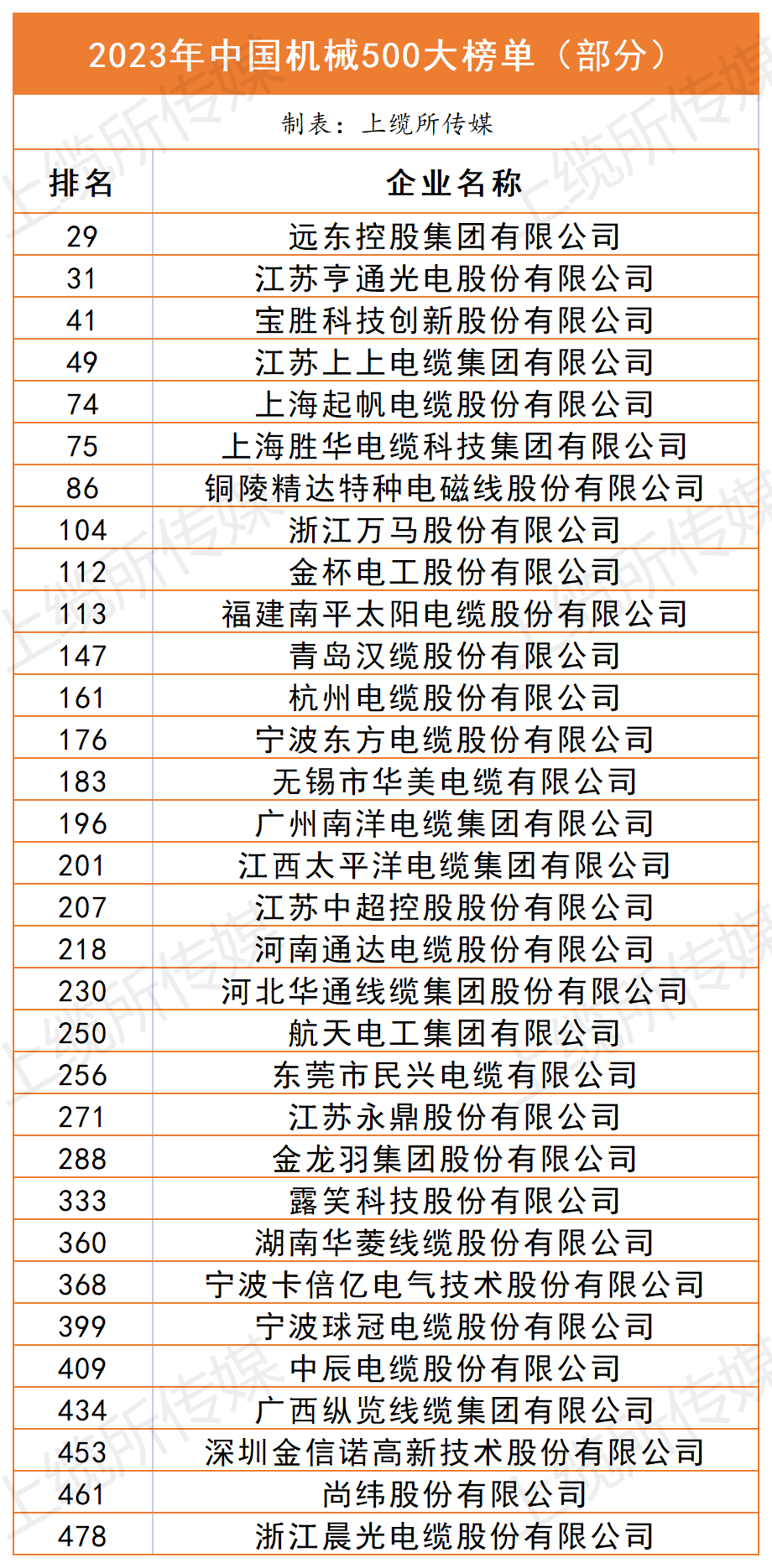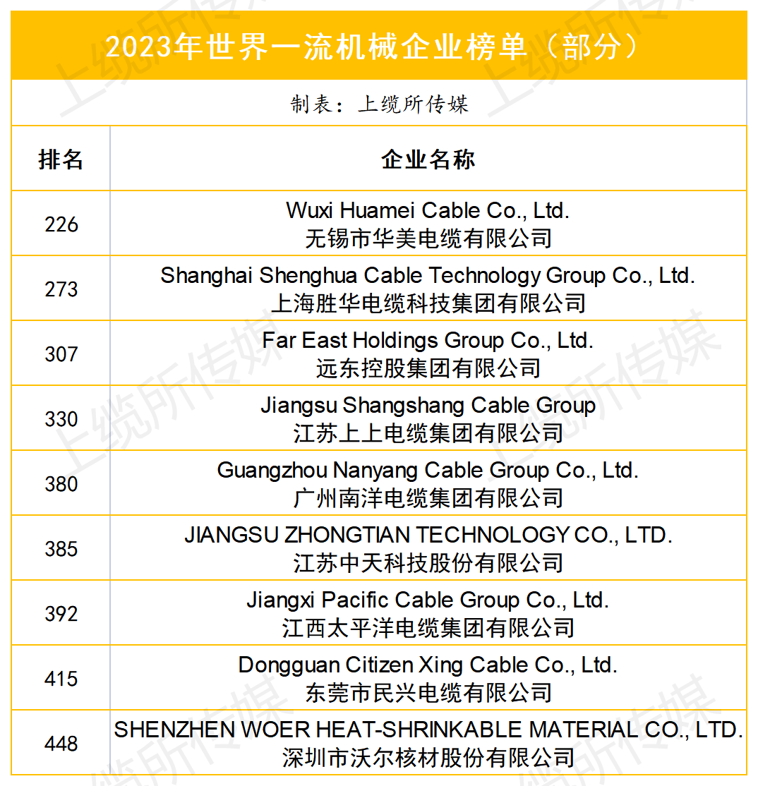 據(jù)上纜所傳媒不完全統(tǒng)計,線纜企業(yè)登榜情況如下: