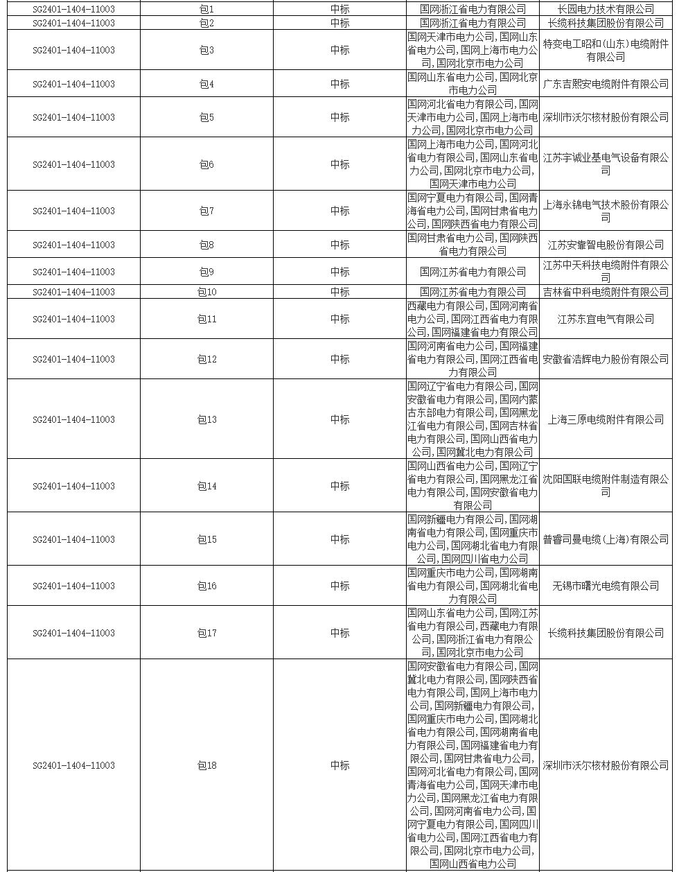 電纜附件國(guó)網(wǎng)2024年第一批采購(gòu) 長(zhǎng)纜中標(biāo)2包1403萬居首