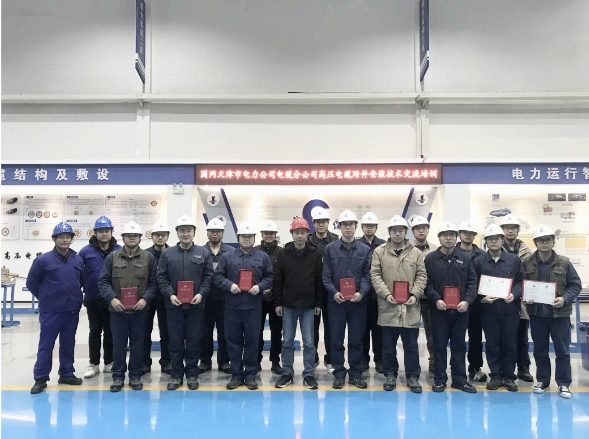 其中,2023年組織國(guó)網(wǎng)客戶(包括國(guó)網(wǎng)天津市電力公司電纜分公司、國(guó)網(wǎng)石家莊供電公司、國(guó)網(wǎng)濟(jì)南供電公司、國(guó)網(wǎng)南昌供電公司、國(guó)網(wǎng)保定供電公司、國(guó)網(wǎng)鄭州供電公司電纜運(yùn)檢中心、國(guó)網(wǎng)長(zhǎng)沙供電公司電纜檢修公司、國(guó)網(wǎng)四川省電力公司成都供電公司等)來(lái)司開展高壓電纜附件安裝培訓(xùn)共計(jì)9場(chǎng),參訓(xùn)學(xué)員48人,累計(jì)培訓(xùn)學(xué)時(shí)584小時(shí);受國(guó)網(wǎng)客戶單位邀請(qǐng)開展各類技能比武、安裝技能提升培訓(xùn)指導(dǎo)服務(wù)共計(jì)12次,累計(jì)培訓(xùn)、指導(dǎo)課時(shí)418小時(shí)。2024年2月底到3月初,為國(guó)網(wǎng)天津市電力公司電纜分公司的15名青年職工提供為期5天的專業(yè)培訓(xùn)。