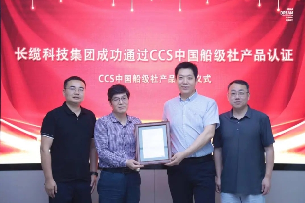 經(jīng)過前期嚴格的質量檢驗與評估,長纜科技首套產品成功通過了中國船級社(CCS)檢驗。2024年6月7日,中國船級社(CCS)武漢分社長沙檢驗處向長纜科技頒發(fā)產品檢驗證書。