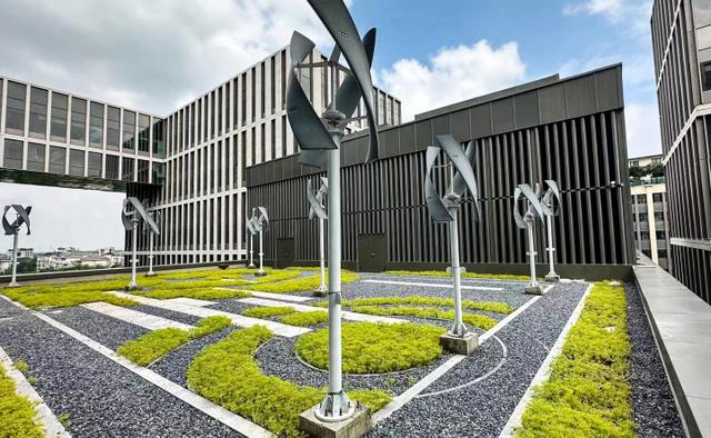 浙能源力科創(chuàng)中心大廈智慧綜合能源供應(yīng)系統(tǒng)中的風(fēng)力發(fā)電設(shè)備。 趙申軼攝