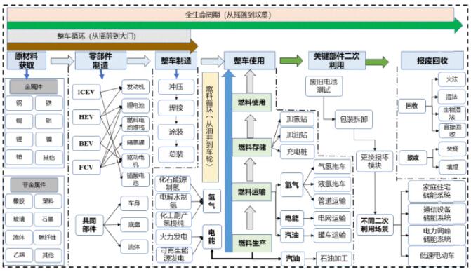 在這種評估思路下,汽車原材料的獲取、制造裝配、運(yùn)行使用、關(guān)鍵部件二次利用直至報廢回收過程中所產(chǎn)生的碳排放都應(yīng)該考慮在內(nèi)。