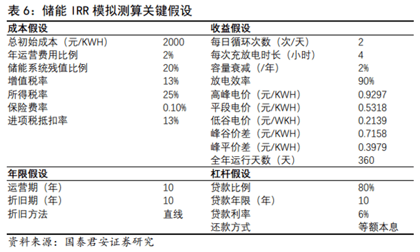國內(nèi)用電側(cè)儲(chǔ)能經(jīng)濟(jì)性已現(xiàn)。我們以10MW/40MWh儲(chǔ)能系統(tǒng)為例進(jìn)行測(cè)算,在未考慮稅收優(yōu)惠時(shí),儲(chǔ)能IRR達(dá)8.60%,在考慮稅收優(yōu)惠的情況下IRR已達(dá)10.46%。