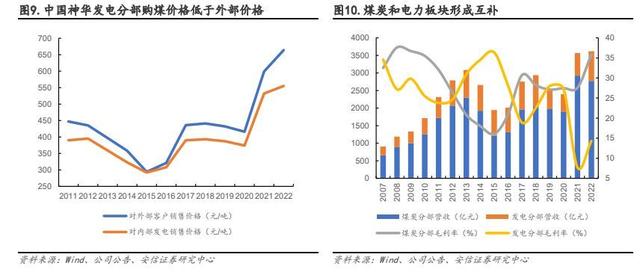 平抑周期波動、協(xié)同上下游降本,煤電一體強(qiáng)化業(yè)績穩(wěn)定性。煤電聯(lián)營可以使煤企和電企建立一種互補(bǔ)的、長效的利益共享、風(fēng)險共擔(dān)的機(jī)制,降低因?yàn)槊簝r波動帶來的經(jīng)營風(fēng)險,確保電廠燃料長期穩(wěn)定供應(yīng)的同時還可減少中間采購環(huán)節(jié),大幅降低發(fā)電成本并鎖定下游火電利潤。以中國神華為例:1)內(nèi)部降本方面,據(jù)公司年報(bào),2011 年至今中國神華發(fā)電分部80%以上煤炭源于內(nèi)部采購,且采購價格均低于外部銷售價格,最大限度降低電廠用煤成本。