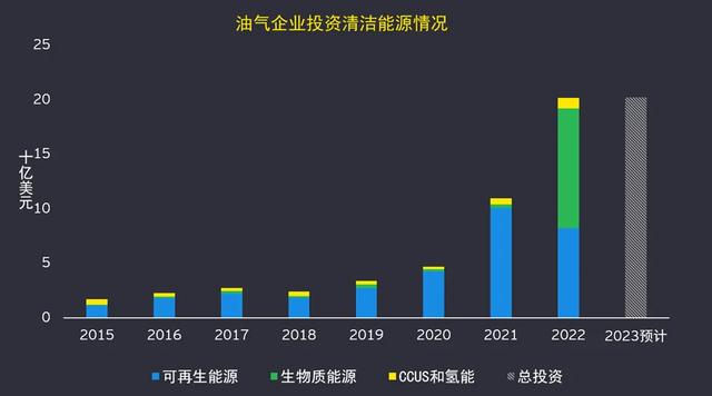 同時(shí),過(guò)去七年中,油氣企業(yè)在各類清潔能源業(yè)務(wù)中的年度投資金額增長(zhǎng)了約六倍,預(yù)計(jì)2023年已到達(dá)202億美元的水平。