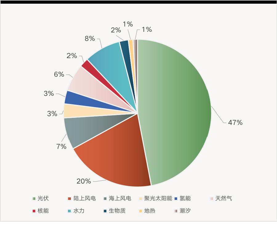該機(jī)構(gòu)還預(yù)測(cè),到2050年,光伏將在全球電力裝機(jī)中的占比達(dá)到47%,風(fēng)電占比為27%。