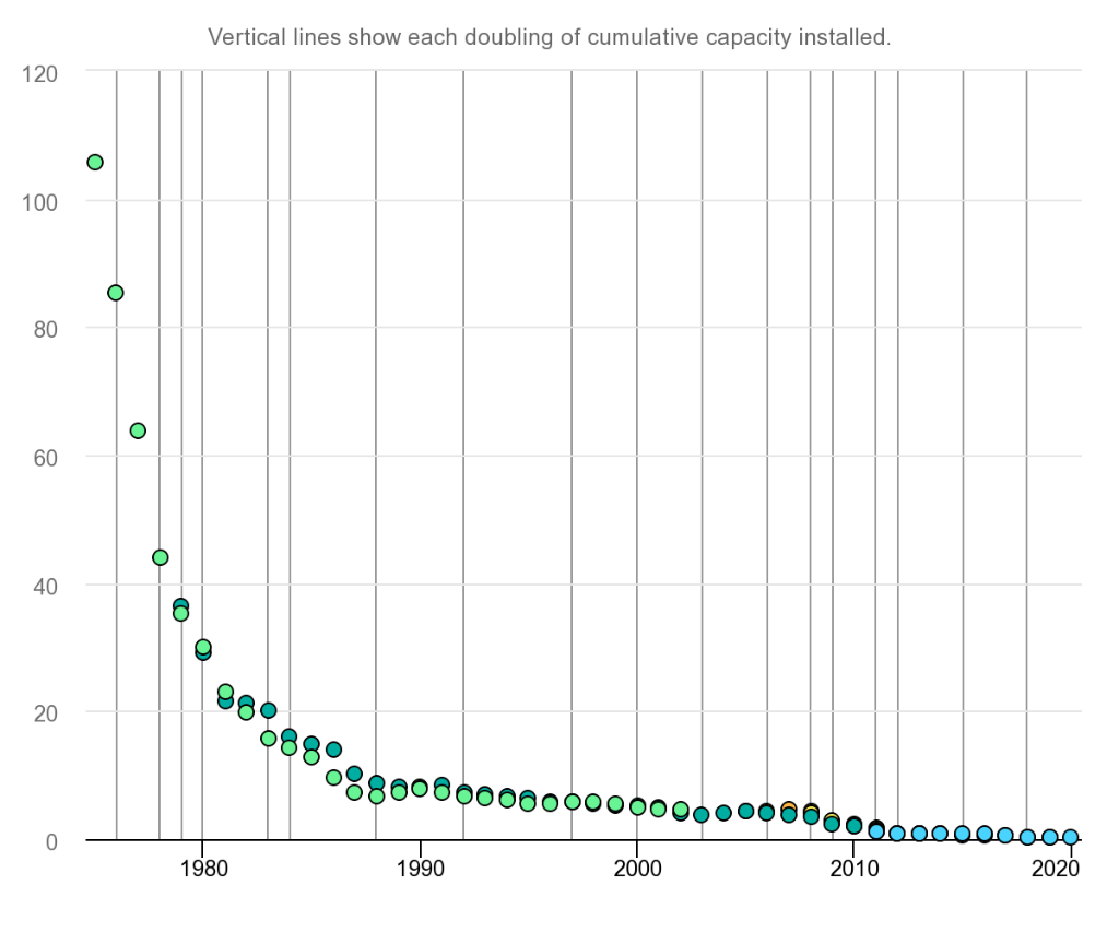 1970-2020 年太陽(yáng)能光伏組件成本的演變