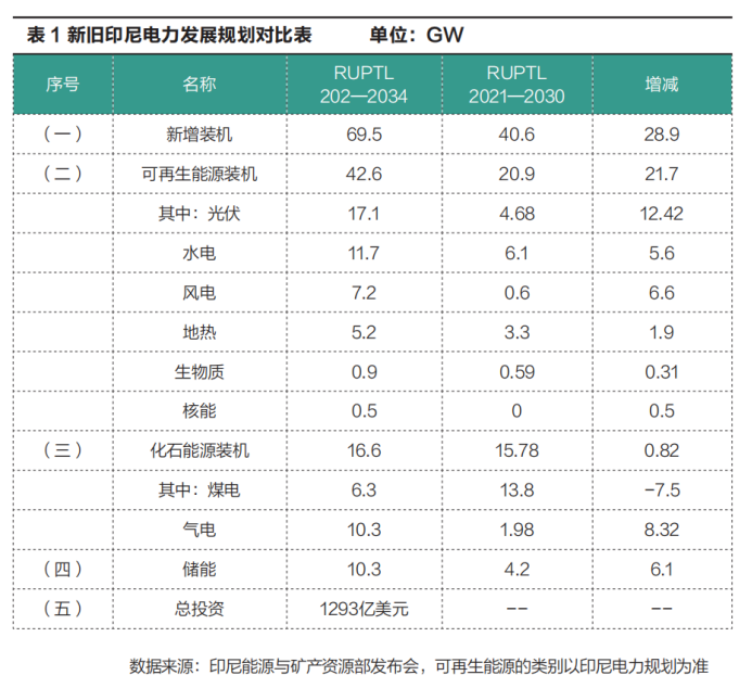 印尼清潔能源轉(zhuǎn)型受挫但目標(biāo)未變。2025年5月,印尼國(guó)家電力公司(PLN)正式發(fā)布了印尼電力發(fā)展規(guī)劃2025—2034(以下簡(jiǎn)稱為《RUPTL2025—2034》)。從這版規(guī)劃中可以看出,印尼政府的清潔能源轉(zhuǎn)型目標(biāo)并未改變,可再生能源裝機(jī)仍然會(huì)得到大力發(fā)展。燃煤發(fā)電機(jī)組大幅減少,氣電機(jī)組增加。對(duì)比十年規(guī)劃,可以看出印尼政府仍然會(huì)加大可再生能源裝機(jī)的投資規(guī)模。2025年至2034年期間,印尼投資建設(shè)的光伏、風(fēng)電裝機(jī)將大幅增加,煤電裝機(jī)將大幅減少。另外,印尼新版規(guī)劃中,約70%的投資額(949億美元)分配給了獨(dú)立發(fā)電商,其中新能源投資額為813億美元。印尼政府對(duì)未來(lái)經(jīng)濟(jì)增長(zhǎng)的樂觀支持著電力裝機(jī)的增長(zhǎng)。據(jù)稱,印尼如此大規(guī)模的電力發(fā)展計(jì)劃是為了支撐實(shí)現(xiàn)印尼2025—2029年間,年均增速8%的經(jīng)濟(jì)增長(zhǎng)目標(biāo)。