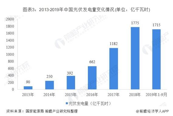 據(jù)國(guó)家能源局統(tǒng)計(jì)數(shù)據(jù)顯示,2013年以來(lái),我國(guó)光伏發(fā)電量增長(zhǎng)迅速。2013年,全國(guó)光伏發(fā)電量?jī)H為90億千瓦時(shí),到2018年,全國(guó)光伏發(fā)電量1775億千瓦時(shí),同比增長(zhǎng)50%;平均利用小時(shí)數(shù)1115小時(shí),同比增加37小時(shí)。光伏發(fā)電平均利用小時(shí)數(shù)較高的地區(qū)中,蒙西1617小時(shí)、蒙東1523小時(shí)、青海1460小時(shí)、四川1439小時(shí)。截至2019年9月底,全國(guó)光伏發(fā)電量為1715億千瓦時(shí)。