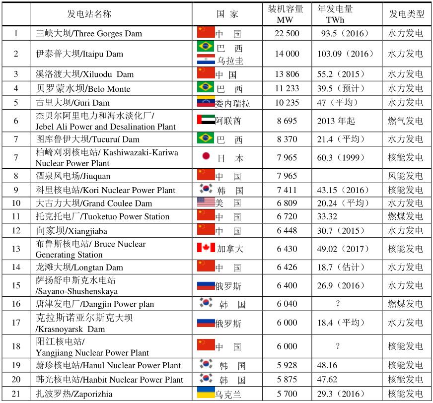 世界上前21名發(fā)電站