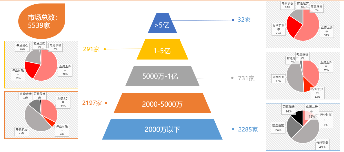 我們把盤柜廠的數(shù)據(jù)拿出來仔細(xì)分析了一下,行業(yè)里有5000多家經(jīng)營活躍的盤柜廠,2000萬以下的有2200家,2000萬到5000萬的又有2000多家,5000萬到一個億的有700多家,1億到5億的有不到300家,5億以上的只有32家,從數(shù)據(jù)可以看出來這是一個非常分散的行業(yè)。