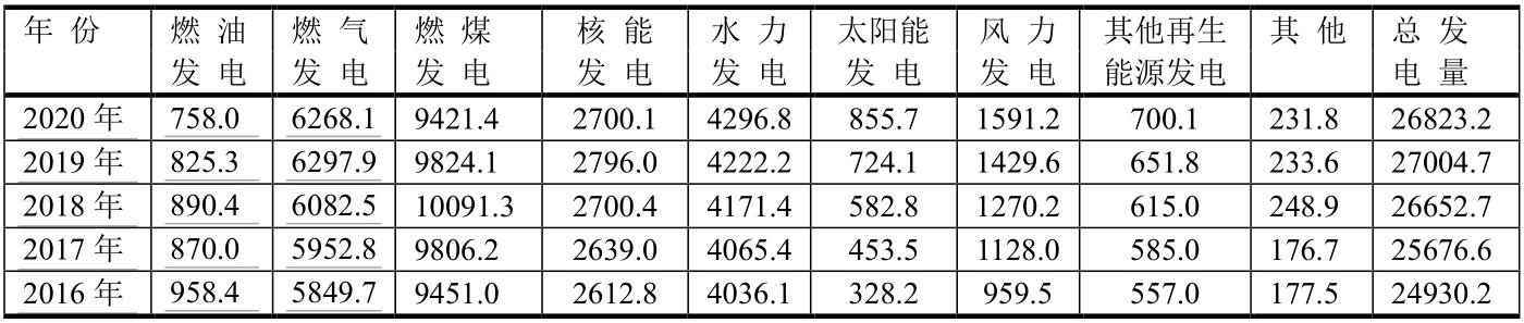 中國(guó)各種能源發(fā)電量(單位:TWh)