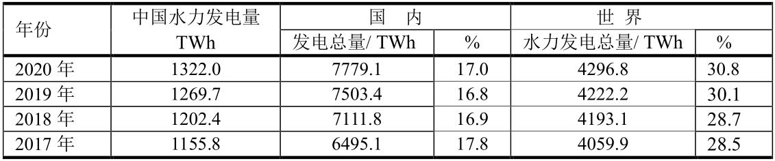 水力發(fā)電是再生能源發(fā)電的“領頭羊”,遠比風力和太陽能的發(fā)電量多。在全球發(fā)電份額中,水力發(fā)電僅次于燃煤發(fā)電和燃氣發(fā)電,居世界第三,約占全球水力發(fā)電總量的30%。水力發(fā)電在中國的地位大大提升,目前在中國發(fā)電份額中燃煤發(fā)電居首,水力發(fā)電居第二位(見表)。