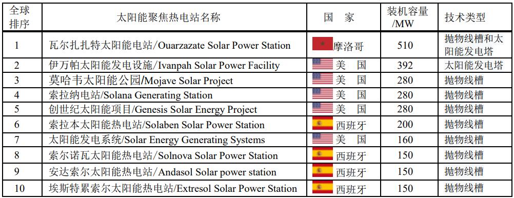 全球前十大太陽能聚焦熱電站