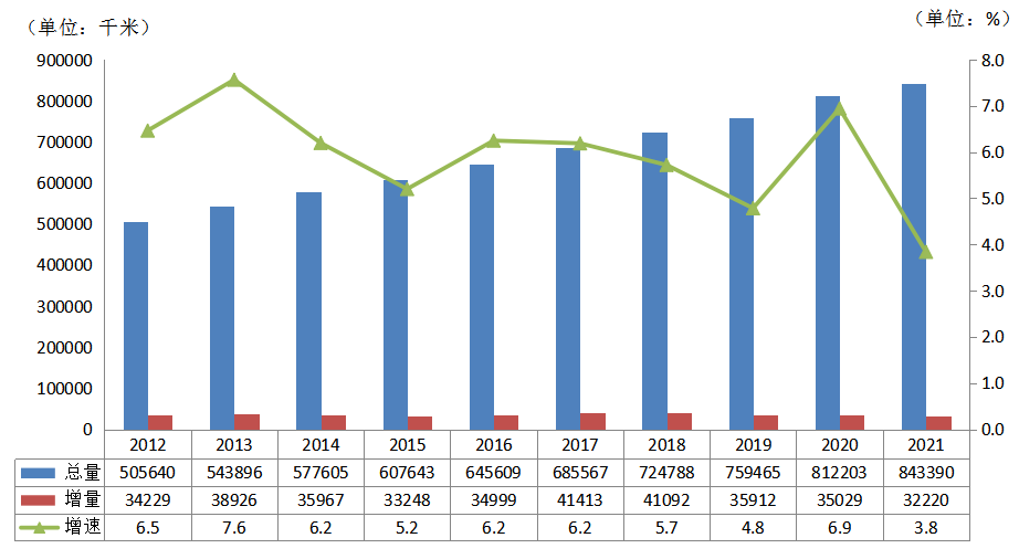 2021年,全國電網(wǎng)220千伏及以上變電設(shè)備容量共49.4億千伏安,同比增長5.0%;220千伏及以上輸電線路回路長度共84萬千米,同比增長3.8%。