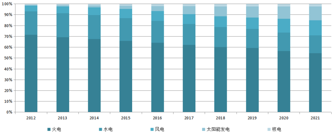 圖5 2012~2021年全國電力裝機結(jié)構(gòu)