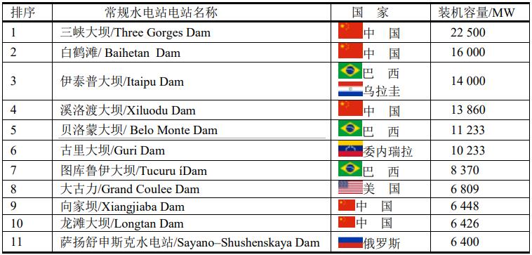 全球十大常規(guī)水電站電站排名,中國居首。原來 巴西和烏拉圭的伊泰普大壩(Itaipu Dam)居世界第二,但由于中國白鶴灘大壩(Baihetan)崛起,裝機容量達16000MW,其中運行4000MW,在建12000MW,躍居世界第二。