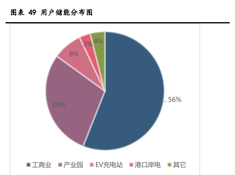 國(guó)內(nèi)用戶側(cè)儲(chǔ)能以工商業(yè)和產(chǎn)業(yè)園為主。2021 年國(guó)內(nèi)新型儲(chǔ)能中用戶側(cè)儲(chǔ)能占比 達(dá)到 24%,重要性愈發(fā)凸顯,細(xì)分應(yīng)用場(chǎng)景來(lái)看,國(guó)內(nèi)工商業(yè)和產(chǎn)業(yè)園占據(jù)了絕對(duì)主力, 合計(jì)占比超過(guò) 80%,是用戶側(cè)應(yīng)用的主流用途。