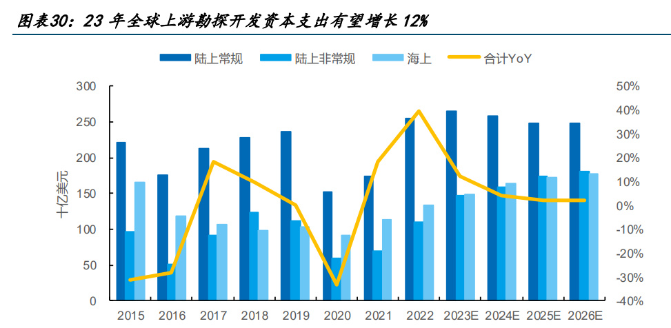 3.2 23 年全球上游勘探開采資本開支有望增長,油服設(shè)備行業(yè)景氣度繼續(xù)提升