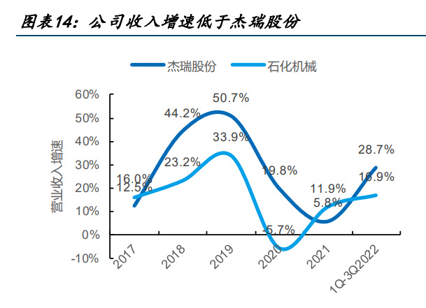我們選取國內(nèi)民營油服設(shè)備龍頭杰瑞股份作為公司可比公司,公司收入增速整體低于杰瑞 股份,同時毛利率與杰瑞股份相比有較大改善空間。針對新一輪國企改革重點考核的“四 提升”,公司與杰瑞股份相比在營業(yè)現(xiàn)金比率、研發(fā)費用率指標較為接近,但在 ROE、勞 動生產(chǎn)率指標上仍有較大提升空間,后續(xù)有望持續(xù)改善。