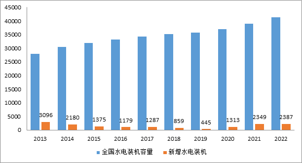 圖11 2013—2022年水電裝機(jī)和新增裝機(jī)情況(單位:萬千瓦)