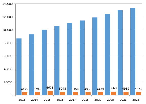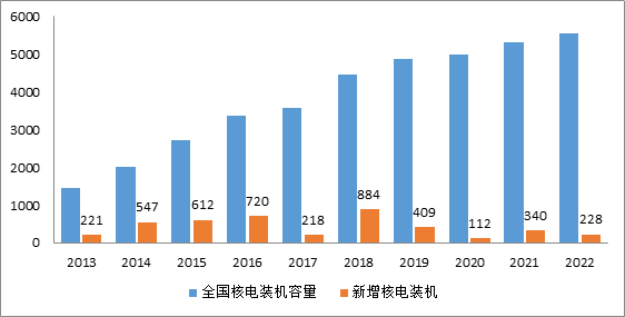 圖10 2013—2022年核電裝機(jī)和新增裝機(jī)情況(單位:萬千瓦)