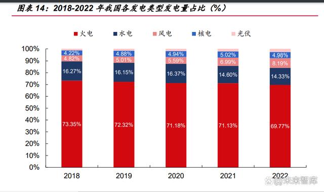 2022 年全國電力供需總體緊平衡,部分地區(qū)用電高峰時段電力供需偏緊。2 月, 全國多次出現(xiàn)大范圍雨雪天氣過程,少數(shù)省份在部分用電高峰時段電力供需平衡偏緊。 7、8 月,我國出現(xiàn)了近幾十年來持續(xù)時間最長、影響范圍最廣的極端高溫少雨天氣, 疊加經(jīng)濟恢復(fù)增長,拉動用電負荷快速增長。全國有 21 個省級電網(wǎng)用電負荷創(chuàng)新高, 華東、華中區(qū)域電力保供形勢嚴峻,浙江、江蘇、安徽、四川、重慶、湖北等地區(qū)電 力供需形勢緊張。12 月,貴州、云南等少數(shù)省份受前期來水偏枯導(dǎo)致水電蓄能持續(xù) 下滑等因素影響,疊加寒潮天氣期間取暖負荷快速攀升,電力供需形勢較為緊張。 未來我國有望形成核電為基,火電調(diào)峰的格局。2022 年我國核電機組發(fā)電量約占總發(fā)電量的 4.98%,仍低于國際平均水平。根據(jù)中國核能行業(yè)協(xié)會預(yù)計,2035 和 2060 年,核能發(fā)電量在我國電力結(jié)構(gòu)中的占比分別需要達到 10%和 20%左右,與當 前 OECD 國家的平均水平相當。
