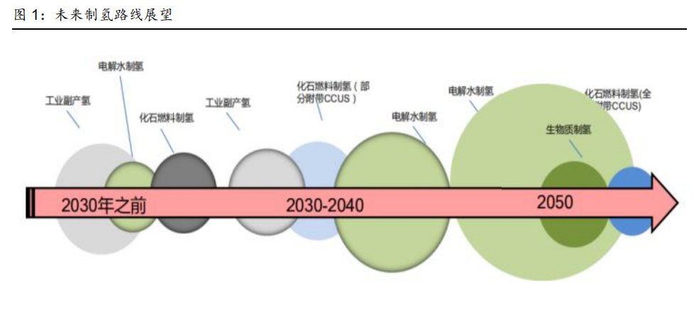 發(fā)展氫能是達(dá)到全球“雙碳”目標(biāo)的重要途徑。氫能是一種來(lái)源豐富、綠色低碳、應(yīng)用廣 泛的二次能源,能幫助可再生能源大規(guī)模消納,實(shí)現(xiàn)電網(wǎng)大規(guī)模調(diào)峰和跨季節(jié)、跨地域儲(chǔ) 能,加快推進(jìn)工業(yè)、建筑、交通等領(lǐng)域的低碳化。目前全球氫能發(fā)展如火如荼,中國(guó)國(guó)家 發(fā)改委、國(guó)家能源局聯(lián)合印發(fā)了《氫能產(chǎn)業(yè)發(fā)展中長(zhǎng)期規(guī)劃(2021-2035 年)》確定了氫 能是未來(lái)國(guó)家能源體系的重要組成部分,海外對(duì)綠氫的重視程度也越來(lái)越高,2020 年歐 盟發(fā)布了《歐盟氫能戰(zhàn)略》,旨在推動(dòng)氫能在工業(yè)、交通、發(fā)電等全領(lǐng)域應(yīng)用;同年美國(guó)發(fā) 布《氫能計(jì)劃發(fā)展規(guī)劃》,指定多項(xiàng)關(guān)鍵技術(shù)經(jīng)濟(jì)指標(biāo),期望成為氫能產(chǎn)業(yè)鏈中的市場(chǎng)領(lǐng)導(dǎo) 者。我們認(rèn)為氫能的開(kāi)發(fā)和利用有望引發(fā)深刻的能源革命,必須重視氫能行業(yè)的發(fā)展和投 資機(jī)會(huì)。